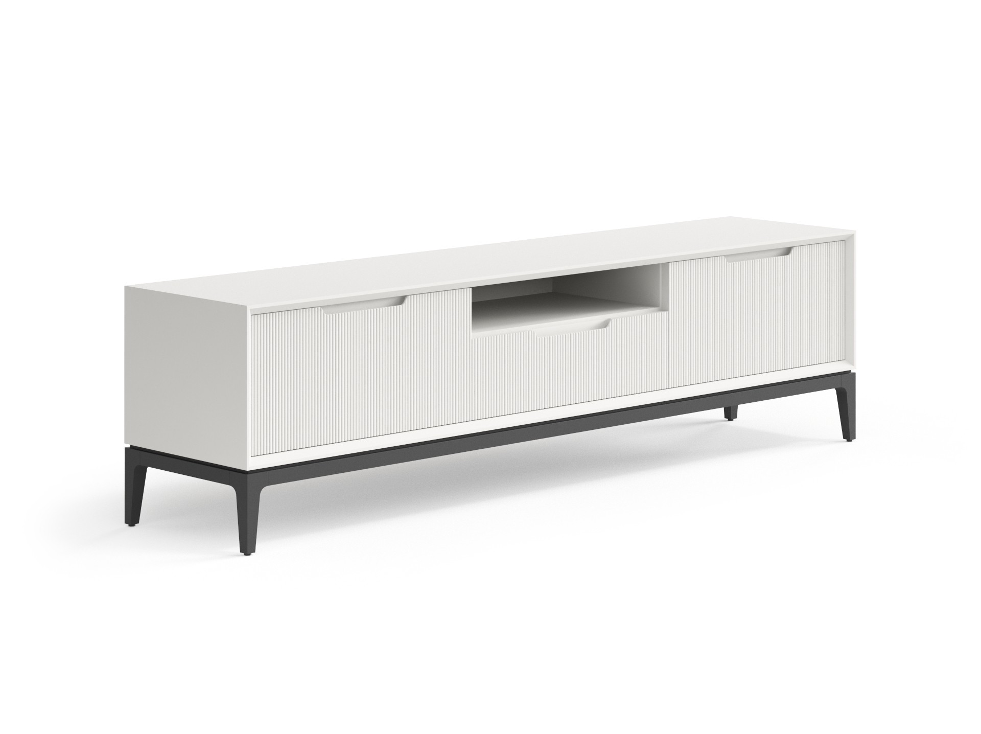 Стильная ТВ тумба гармонично впишется в вашу гостиную и сделает зону отдыха приятной и комфортной. Боковые дверцы и центральный выдвижной ящик позволят разместить все необходимые вещи за фасадами с рельефной фрезеровкой. Ничто не будет отвлекать вас от отдыха и просмотров любимых фильмов.
