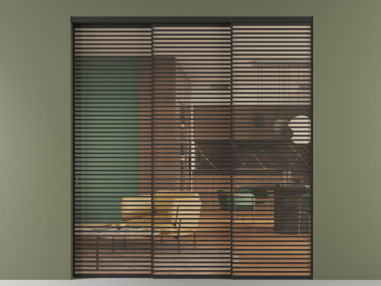 Перегородка Formato внутри проёма 3 створки с синхронным механизмом